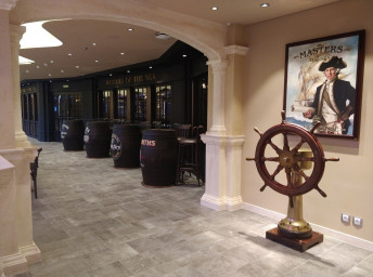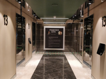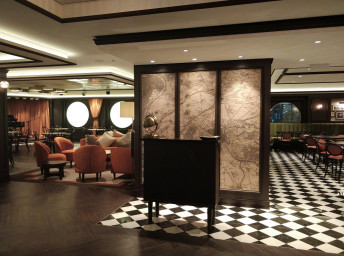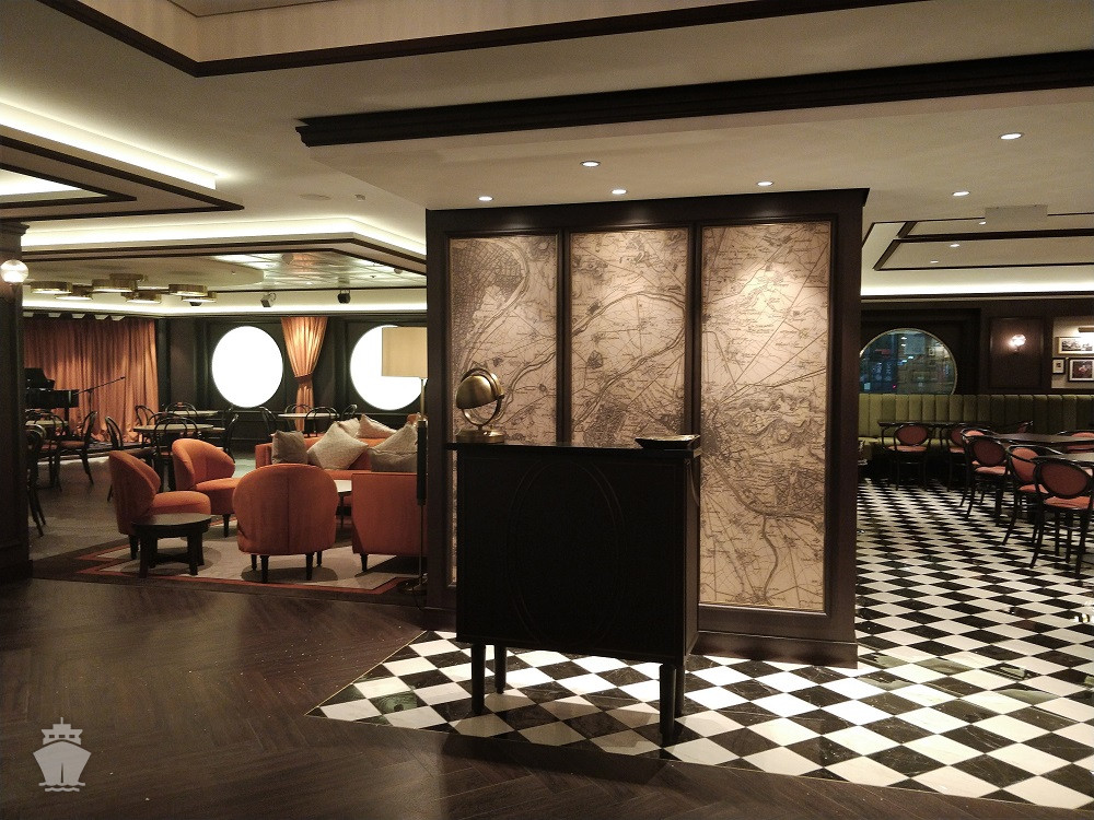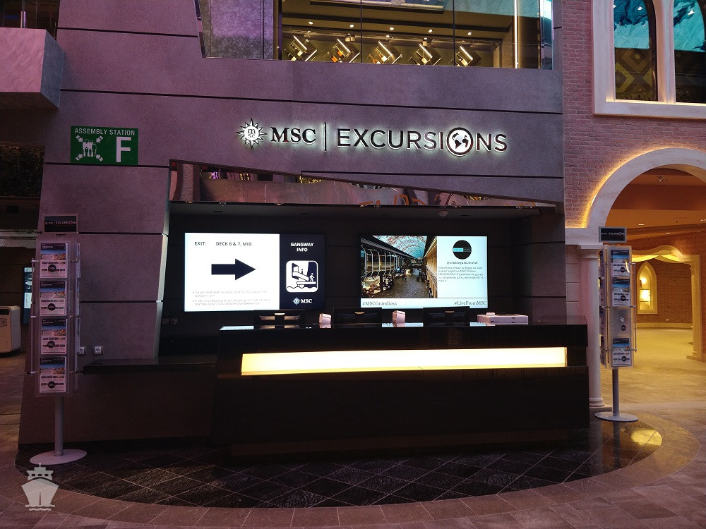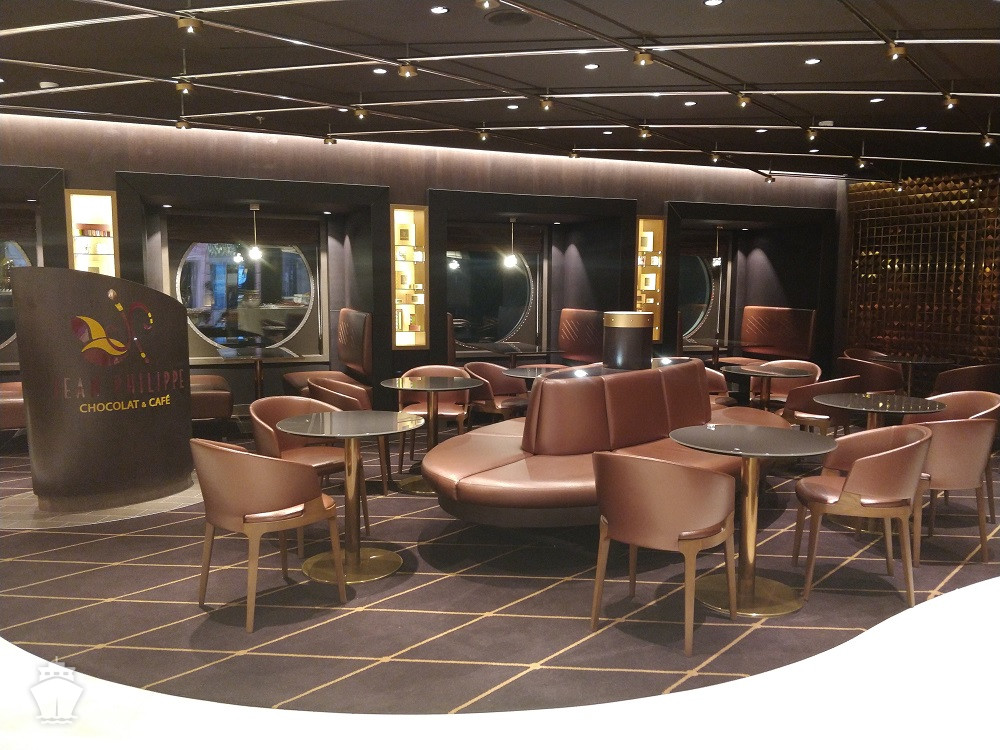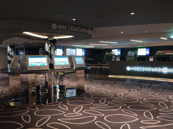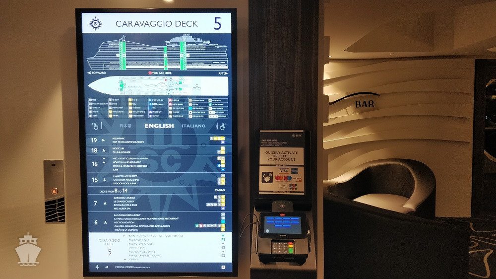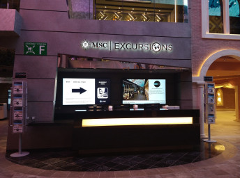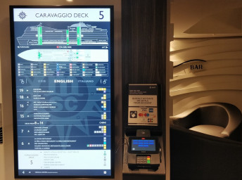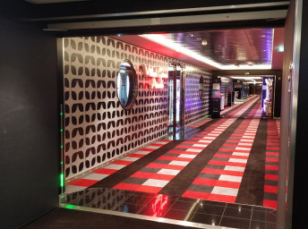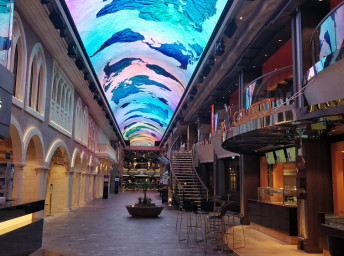 - Dvojúrovňová promenáda s reštauráciami, barmi a duty-free obchodmi, zastrešená 480 m² LED “digitálnou oblohou” s vizuálnymi show