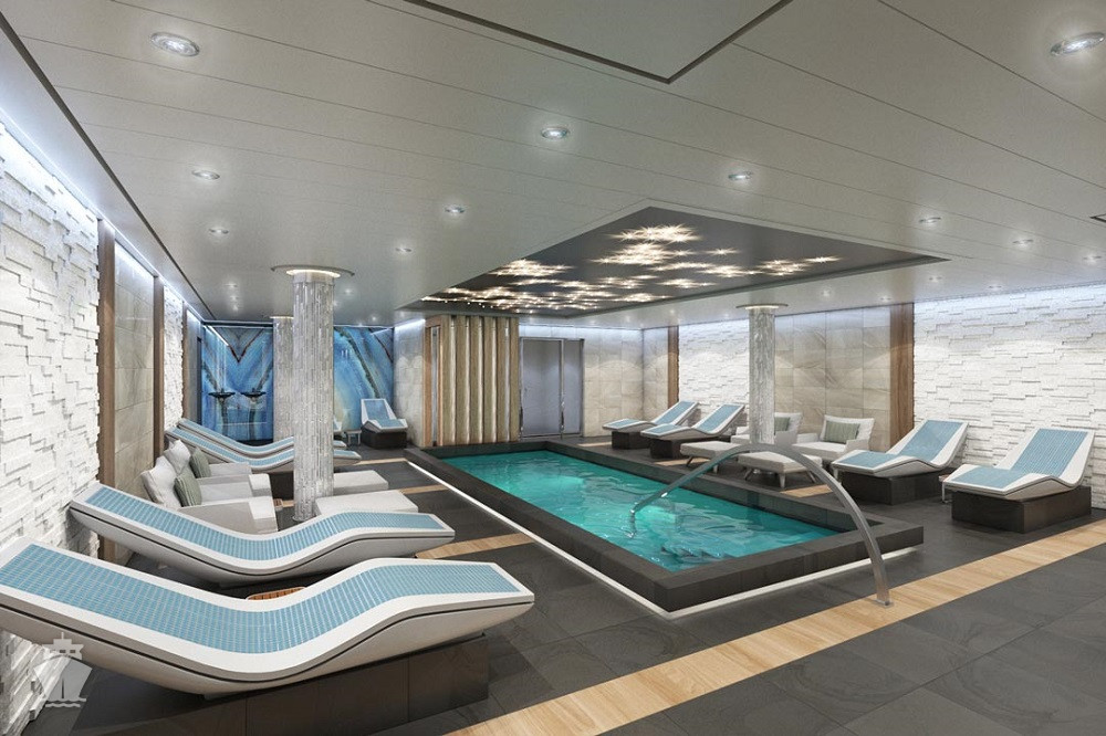 Serenity (18. paluba) 8:00 - 23:00. Oddychová zóna pre dospelých 21+ s bazénom, barom, lehátkami a kreslami a 2 vírivkami.