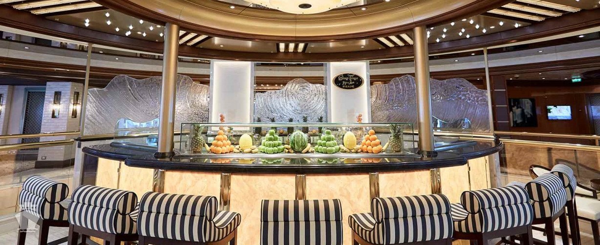 Club Class Dining: Exkluzívna časť hlavnej reštaurácie vyhradená pre hostí Club Class and Full Suite, s urýchlenou obsluhou. Originálna štýlová dekorácia, príprava jedál priamo pri stole a ďalšie extra!