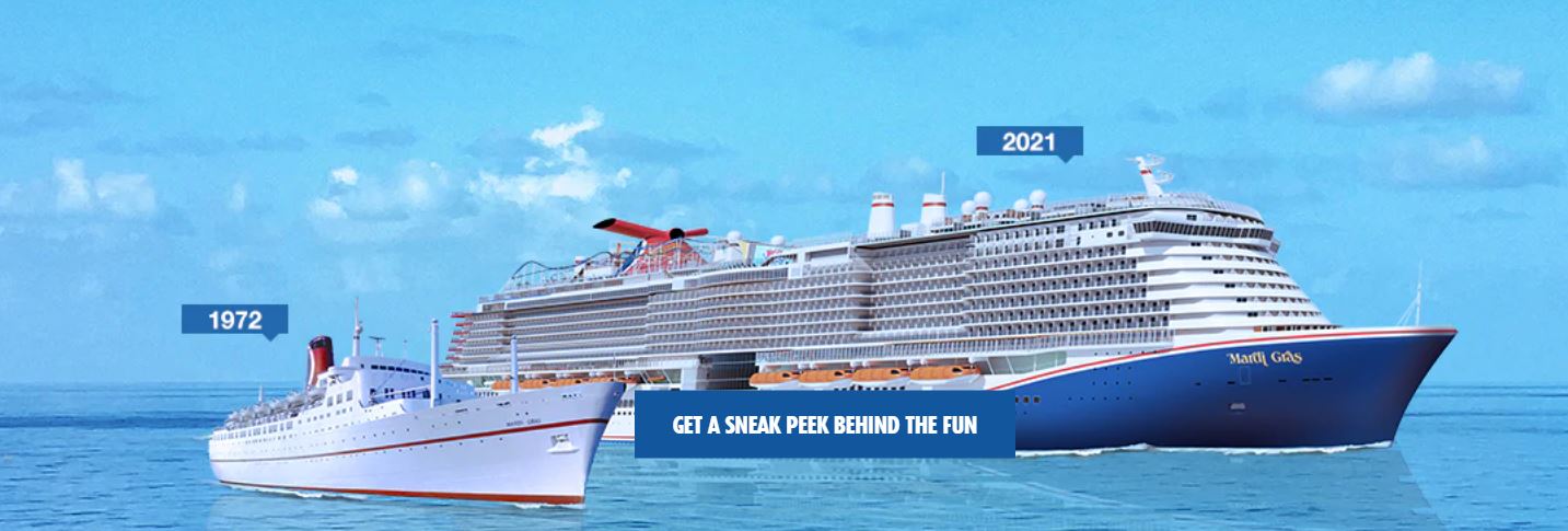 V roku 1972 sa uskutočnila plavba na prvej lodi spoločnosti Carnival Cruise Line - na Mardi Gras lodi, ktorá bola menšia, ale už vtedy bolo na nej dostatok zábavy. Nik nečakal, že práve táto loď zmení "výletný svet".