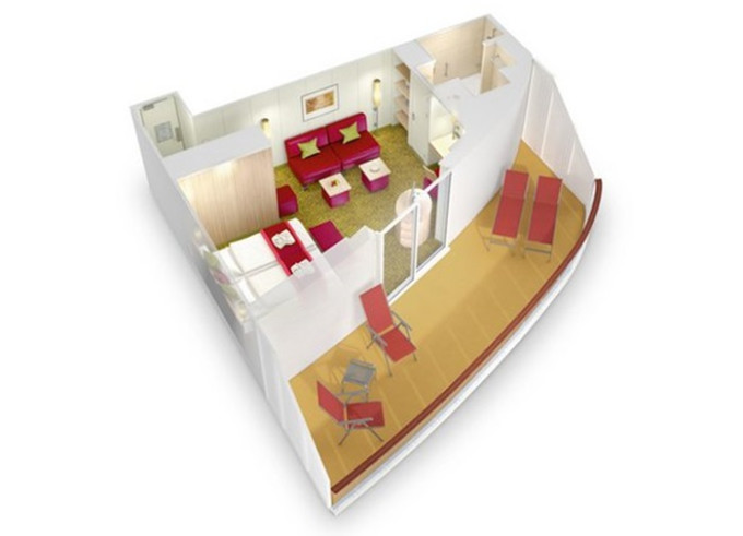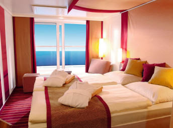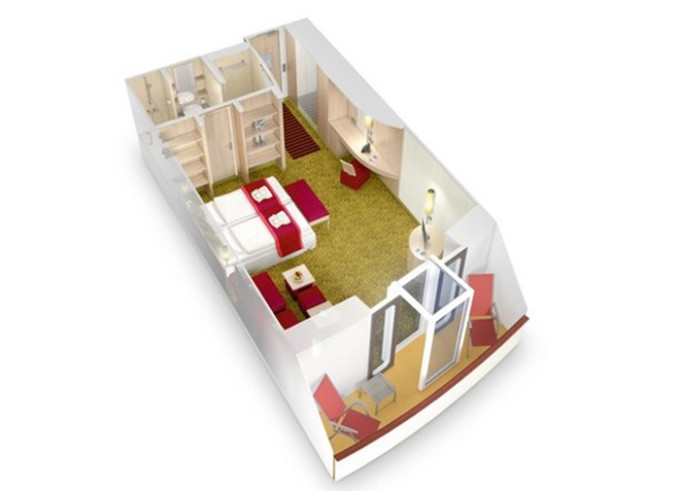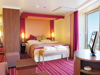 BA - Kajuta s balkónom PREMIUM 14.5-20 m² + balkón 3 m². Max 3 osoby. 6. až 9. paluba. Cenový model Premium. 3 480 € 1 740 € za osobu
