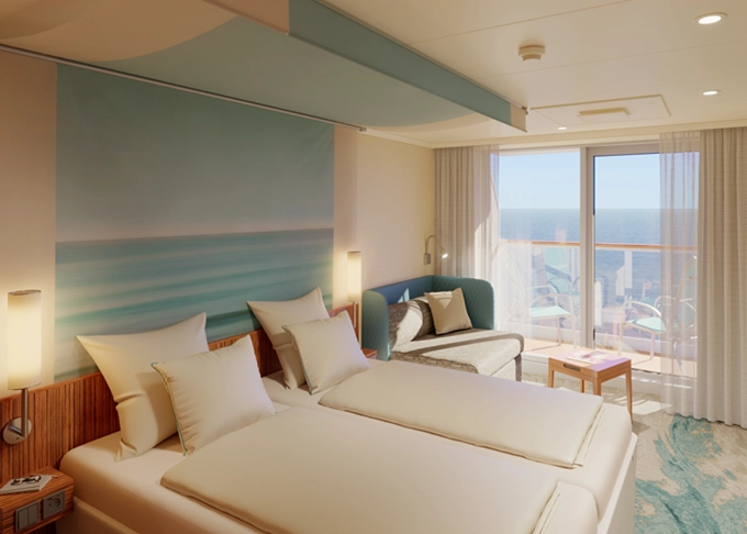 SD - Junior Suite PREMIUM od 24 m² + balkón 10 m². 7,8,9. paluba. Max 4 osoby. Cenový model Premium + výhody Junior Suite. 4 680 € 2 340 € za osobu