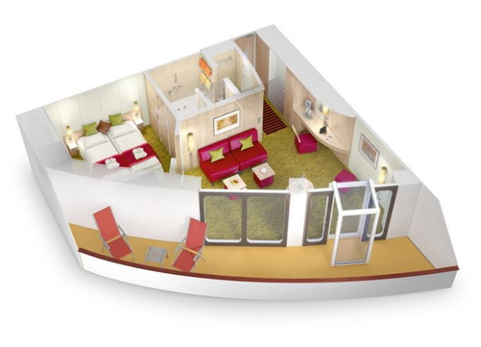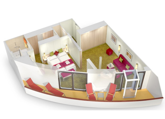 SA - Suite Deluxe PREMIUM od 56 m² (vrátane terasy od 12 m²). 6,8. paluba. Max 5 osôb. Cenový model Premium + výhody Suite. 6 070 € 3 035 € za osobu