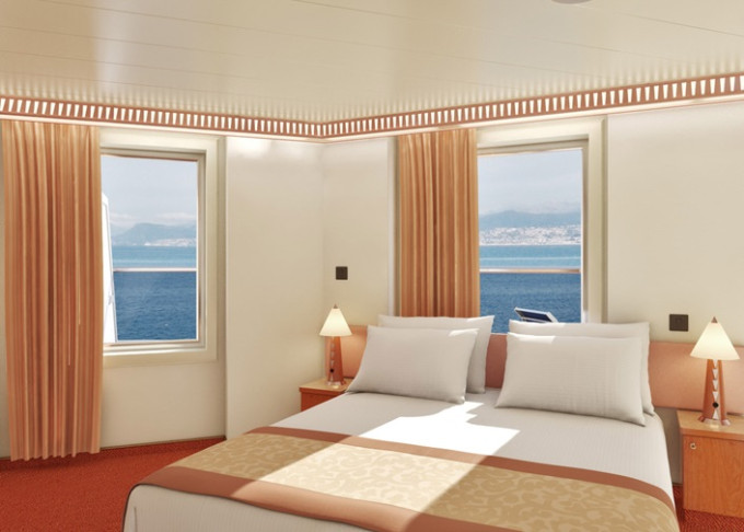 6K - Vonkajšia kajuta Grand Scenic 29 m². Veľké panoramatické neotvárateľné okná. 9. paluba vpredu. 1 842 € 921 € za osobu