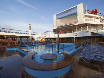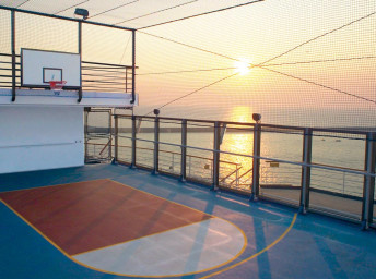 • Využívanie fitness centra, sauny, bežeckej dráhy, bazénov, víriviek, tobogánov a vodného parku (na vybraných lodiach), mini golf, basketbal, volejbal, stolný tenis, knižnica