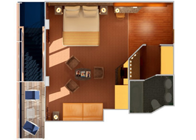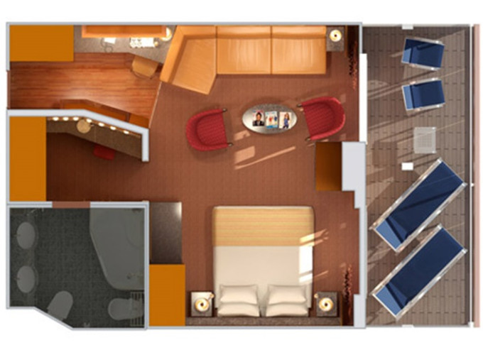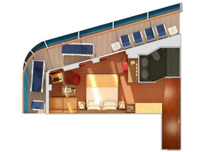 VS - Suite Vista 23 m² + rohový balkón 20 m². 4. až 8. paluba vzadu. Výhody Suite. | 4 784 € 2 392 € za osobu | ||