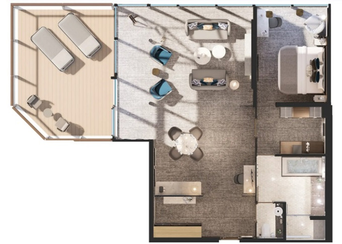 SS - Signature Suite 67 - 68 m² (vrátane balkóna). 8.paluba - stred. Max 2 osoby. 83 800 € 41 900 € za osobu