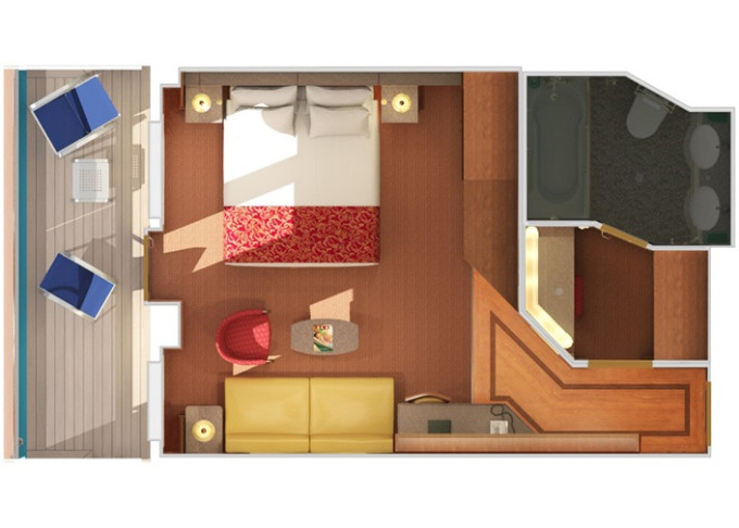 9C - Kajuta s balkónom Premium Vista 17 m² + balkón 7 m². 9. až 8. paluba vzadu. 4 504 € 2 252 € za osobu