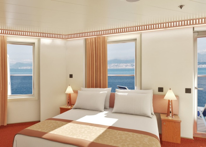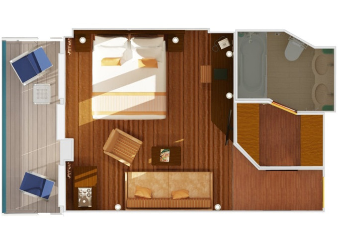 GS - Grand Suite 32 m² + balkón 8 m². 7. paluba stred. Výhody Suite. 5 414 € 2 707 € za osobu