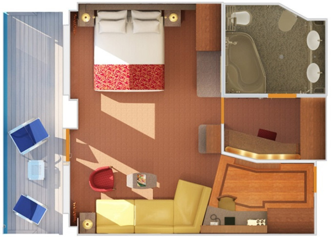 8P - Kajuta s balkónom Cloud 9 Spa 17 m² + balkón 3 m². 10,12. paluba vpredu. Voľný vstup do Spa a balíček Cloud 9 Spa. 3 816 € 1 908 € za osobu