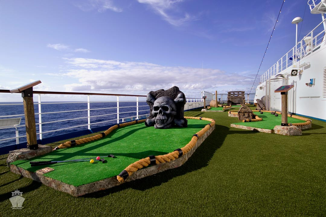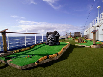 • Využívanie fitness centra, sauny, bežeckej dráhy, bazénov, víriviek, tobogánov a vodného parku (na vybraných lodiach), mini golf, basketbal, volejbal, stolný tenis, knižnica