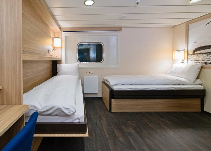 O2 - Vonkajšia kajuta Polar 8-12 m². Neotvárateľné okno. Oddelené postele, Tv. 3. paluba. Max 2 osoby. 7 360 € 3 680 € za osobu