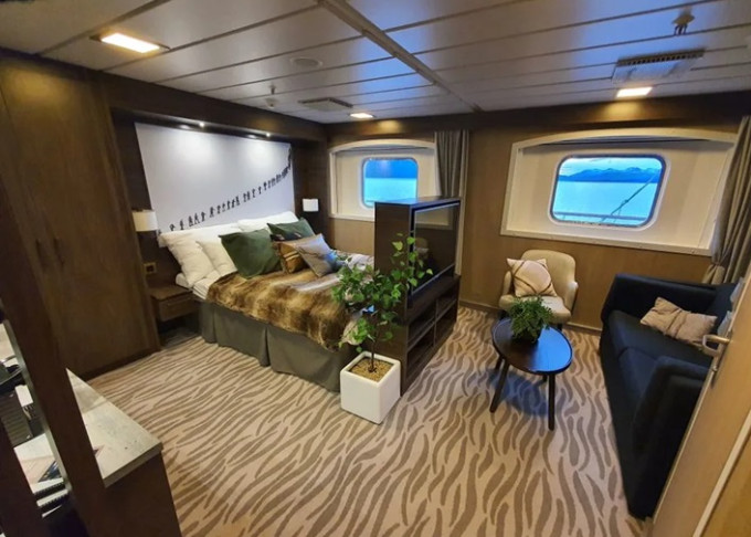 Q4 - Expedition Mini Suite 15-20 m². Obývacia časť, manželská posteľ, Tv, sofa, minibar. 5, 6. paluba. Max 4 osoby. Výhody Suite. 12 908 € 6 454 € za osobu
