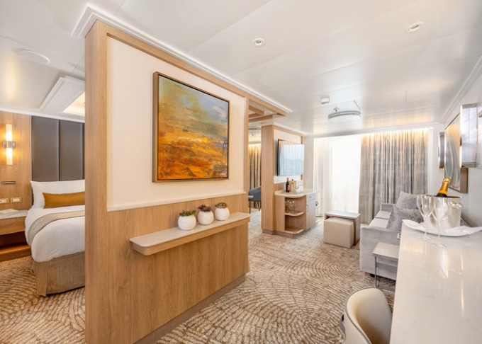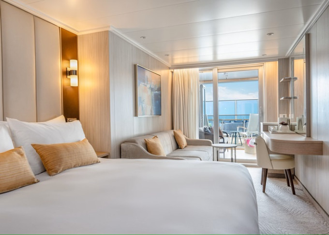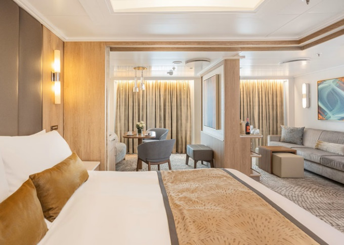 S2 - Signature Owner Suite 59 m² (vrátane balkonu). 10. paluba v strede, 16. paluba na korme. Max 4 osoby. Šatník, kúpeľňa s vaňou, oddelené WC, kávovar Nespresso. Výhody Signature Collection. | 8 740 € 4 370 € za osobu | ||