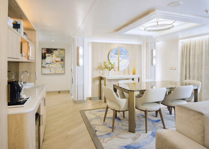 S0 - Signature Sky Suite 117 m² (vrátane balkónu). 16. paluba na korme. Max 5 osôb. Šatník, 2 spálne, obývačka s jedálenskou časťou, 2 kúpeľne (jedna so sprchou), šatník, kávovar Nespresso. Výhody Signature Collection. | 14 184 € 7 092 € za osobu |