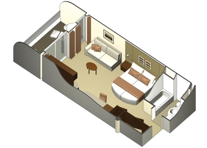 CS - Celebrity Suite 37 m² + balkón 9 m². 10,11. paluba. Max 4 osoby. Výhody Suite. | 15 164 € 3 791 € za osobu |