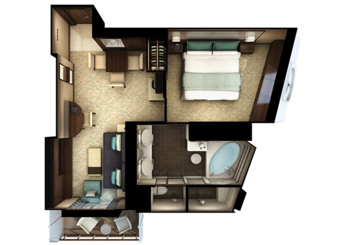 HD - The Haven Deluxe Suite 50 m² / balkón 7 m². Vírivka. 16. paluba - vpredu. Max 4 osoby. Výhody The Haven. | 7 580 € 3 790 € za osobu |