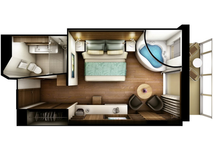 HI - The Haven Penthouse 28 m² / balkón 5 m². 16. paluba - vpredu. Max 2 osoby. Výhody The Haven. | 6 100 € 3 050 € za osobu |