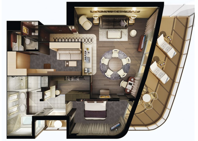 H2 - The Haven Deluxe Owner's Suite 121 m² / balkón 36 m². 17,18. paluba vpredu. Max 6 osôb. Výhody The Haven. | 13 102 € 6 551 € za osobu |