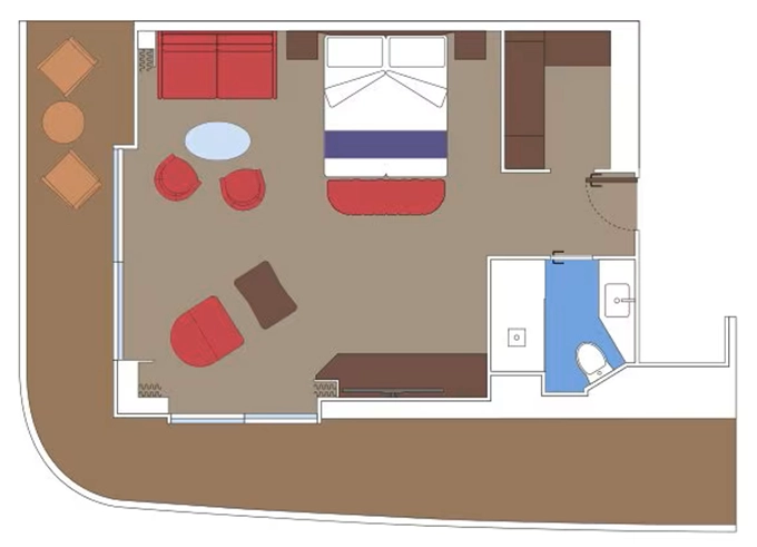 | SXJ - Grand Suite Aurea s terasou a vírivkou 35 m² + balkón od 37 m². Vírivka. 15/16. paluba. Cenový model Aurea. | 6 082 € 6 082 € za osobu |