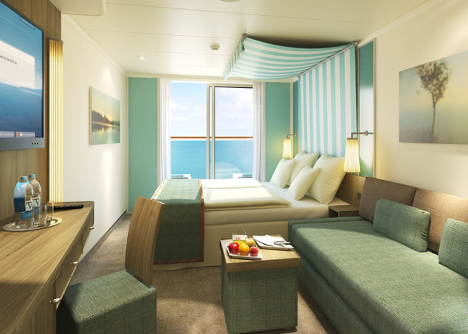 VG - Kajuta s verandou PREMIUM od 16 m² + balkón 6 m². 9. až 14. paluba. Max 4 osoby. Cenový model Premium. | 2 430 € 1 215 € za osobu |
