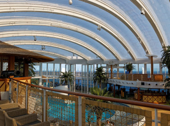 AIDA Plaza cez 2 paluby s barmi a obchodíkmi slúži ako miesto stretnutí.